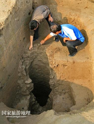 國家旅游地理 河北滄州9月21日訊 9月20日,考古人員在肅寧縣梁村鎮(zhèn)北白寺村附近的古村落遺址發(fā)掘現(xiàn)場工作。近日,南水北調保滄干渠工程征遷核查期間,在河北省肅寧縣梁村鎮(zhèn)北白寺村發(fā)掘了一處古村落遺址,考古人員進行搶救性發(fā)掘,出土了大批唐宋時期的生活用品、陶瓷碎片及一眼古井。據(jù)介紹,目前考古隊已挖出13個探方,該古村莊遺址的搶救性發(fā)掘工作還將持續(xù)3個月,探方數(shù)量將增加到80多個,面積達2000平方米。該遺址的發(fā)掘,有助于了解當?shù)禺敃r的經(jīng)濟狀況和生活狀態(tài)。 /新華社記者 楊世堯 攝
